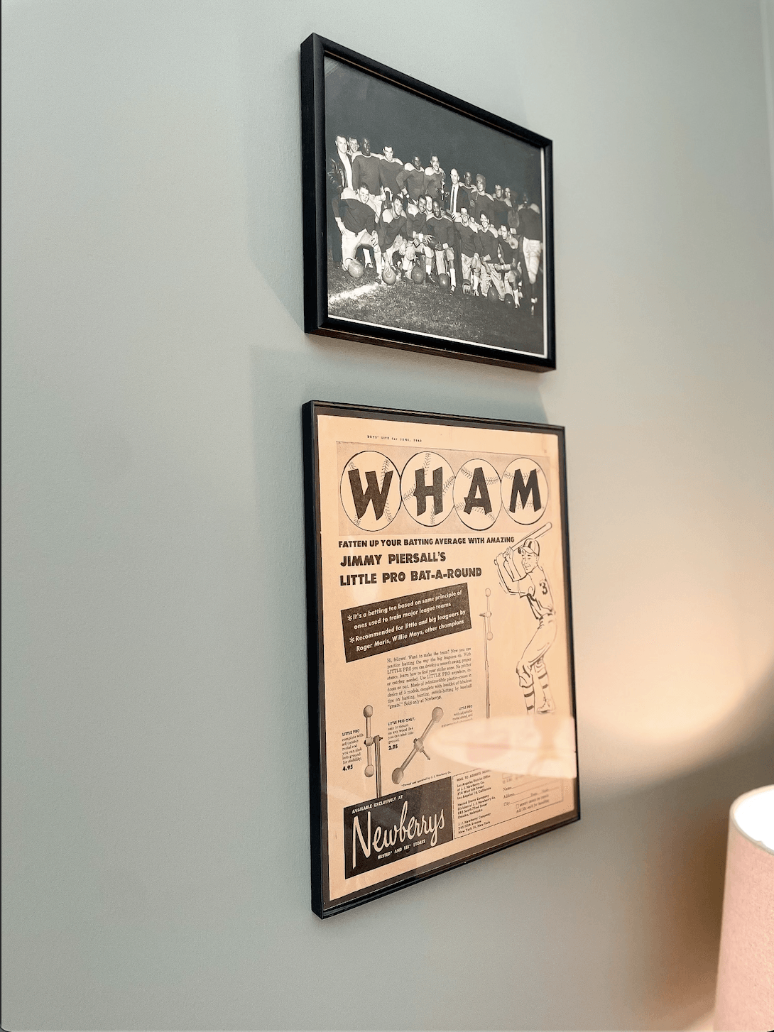 I have been dying to style a space using vintage sports gear since July, when we had my son’s vintage baseball 2nd birthday party. Some projects are daunting, and some are so exciting that I can hardly wait to get started. This was one of those projects that had me hitting the thrift stores the very next day to find as many vintage sports themed items as possible. I even outsourced some of the thrifting, because I know a good vendor in Nashville who always has quality pieces. I sent my best friend Cat to East Nashville Antiques to shop The West Place booth. Their booths are always stocked with the COOLEST finds. From vintage camp, to sports, to western…they have you covered.