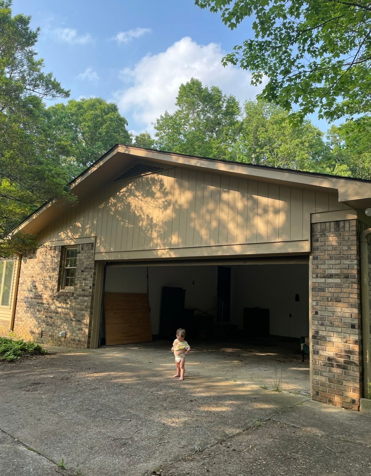 We vaulted the ceiling and added a bathroom and three closets at the back of the garage, which used to just be an old tool closet. I will share an entire master bath reveal soon.
