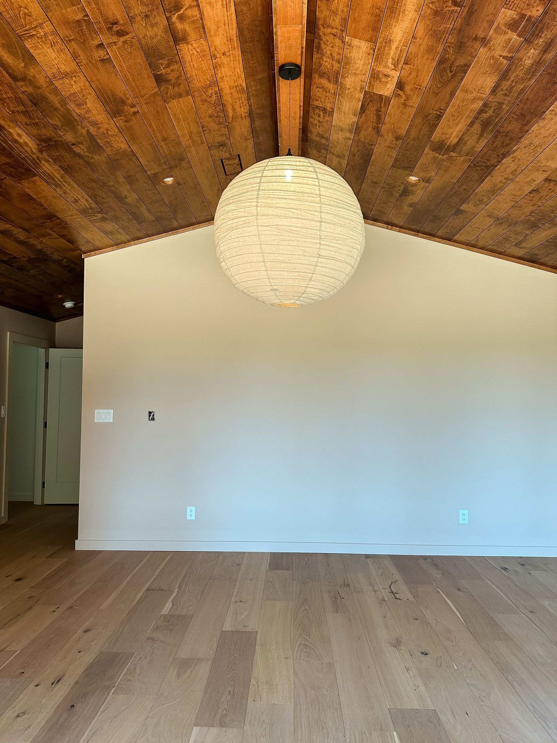 The wood on the ceiling is maple, stained with Old Masters in the color Cedar. I'll link it here. This is the same wood we used on the walls in the main living area. I really wanted mahogany instead of maple, but the price difference was a no-brainer. Maple was a lot cheaper, so we went with that option.