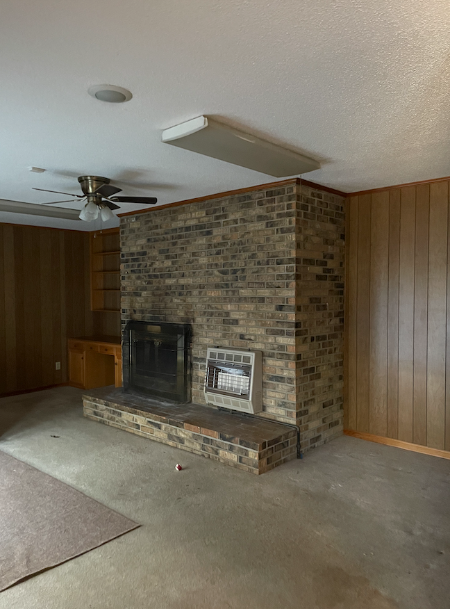I went home that night and immediately looked to Pinterest. Somehow, I don’t know if it was luck, or the universe or what, but I found a midcentury home online that had the exact same floorplan as “our” house. Double sided fireplace and everything. I showed the house to Will the next day, along with the home on Pinterest. It took him a little while to see my vision. I had to do some major convincing, which included walking through every square inch of the home to tell him what each space “could” be. He finally agreed to let me call our go-to contractor just to see if my ideas were even attainable. I walked Eric through the house and he said, “Welp, it’s going to be a huge project, but a fun one.”