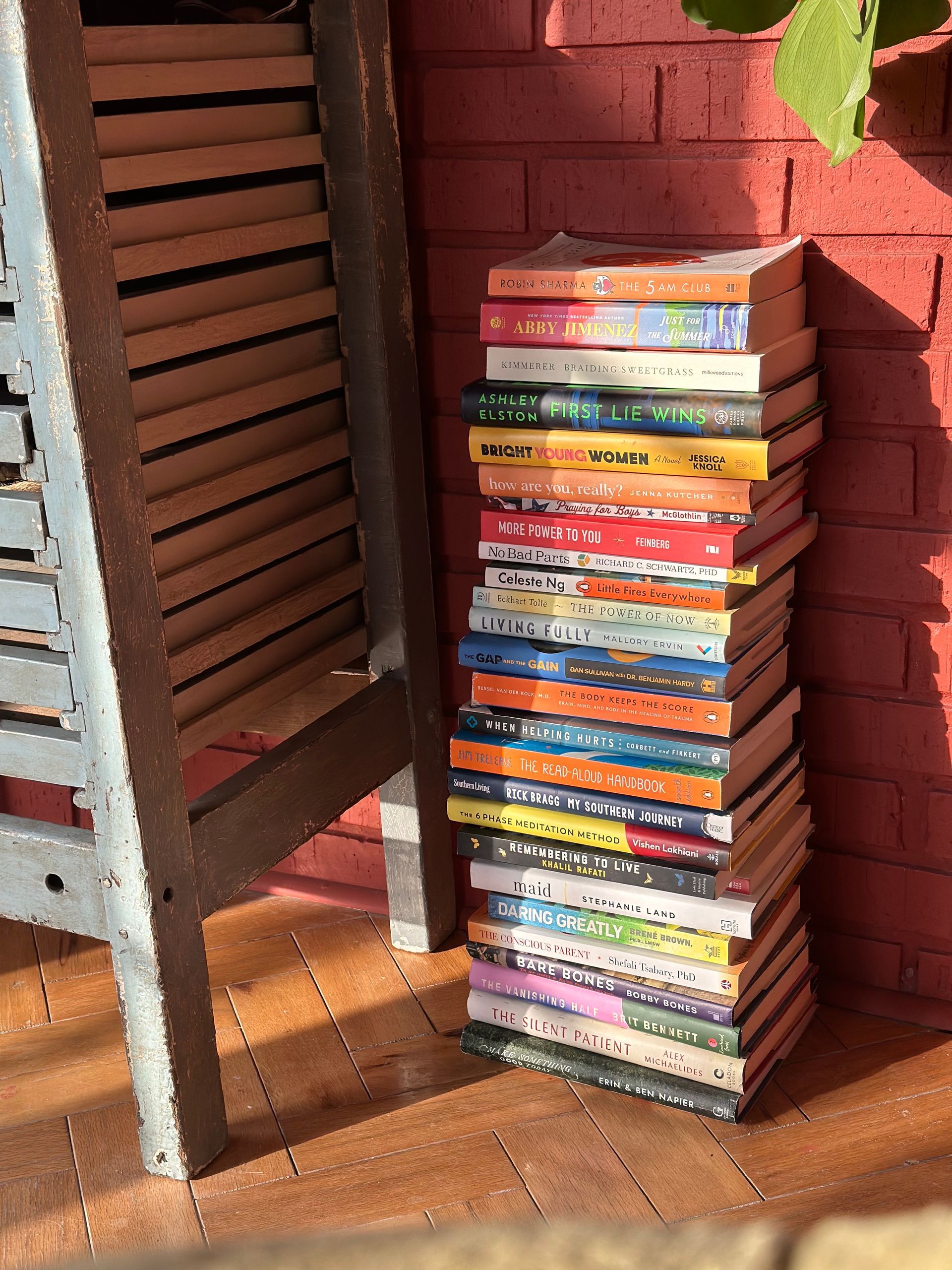 Now let’s talk about the book ledge! I am a lover of books---obviously. I like to organize my books by the ones I’ve read, the ones I haven’t read and the ones I’ve only partially read. And there are a lot of those! Because I am slightly ADHD (undiagnosed, but also self-diagnosed lol)