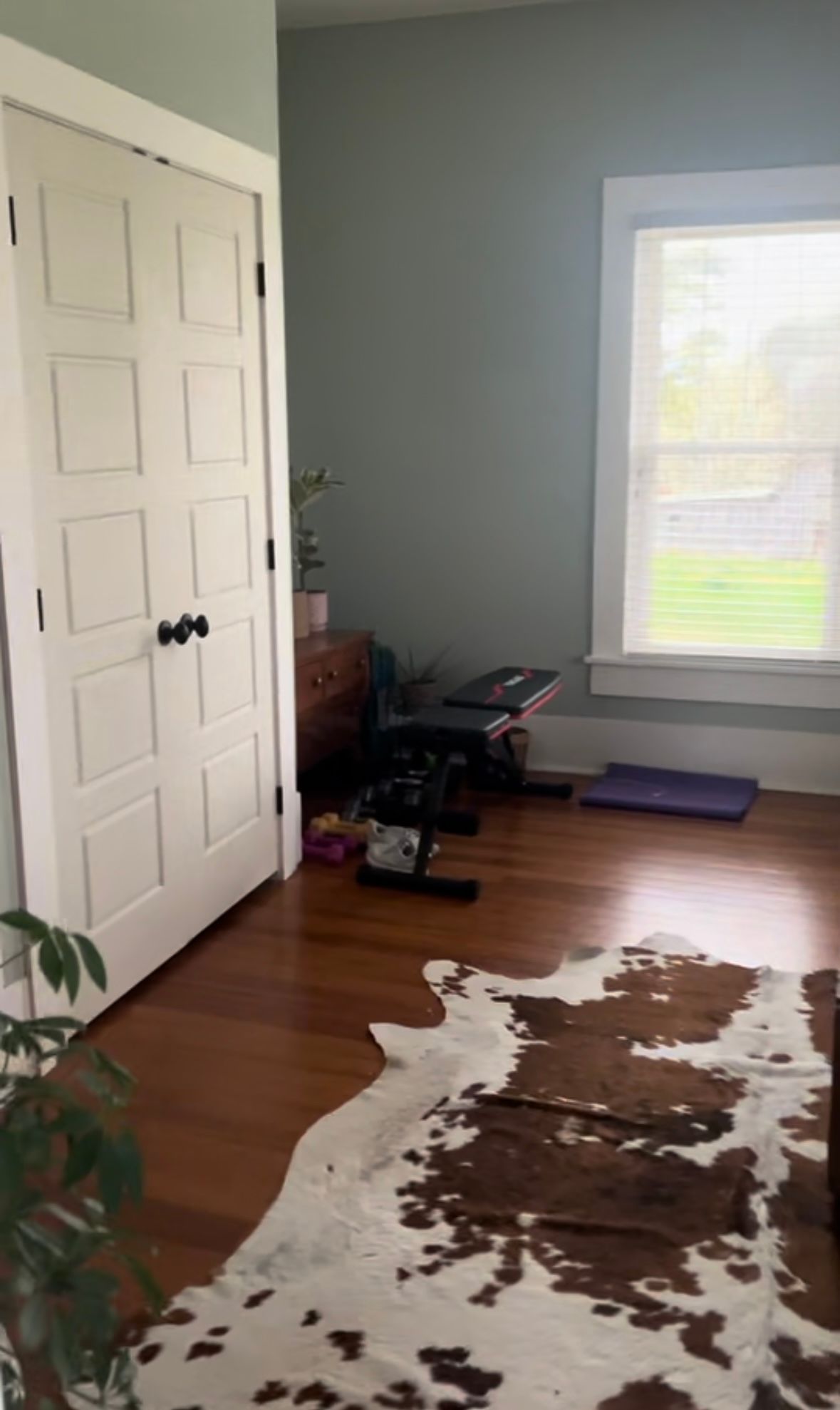 I always like to start out by updating light fixtures and paint color if necessary. The new paint color is called Current Mood by Clare Paint. It's the perfect moody green-blue. The photos I've added here have a filter on them, so the paint appears darker in person. We decided against totally color drenching the space and we left the ceiling white. We did this just in case the whole color drenching trend goes out of style in the next few years. The floors are totally original, which makes my heart sing. The Jenny Lind-style bed was being used in her daughter’s room, so we just brought it downstairs! It’s always nice to be able to go shopping in your own home. Tamra has been a customer of mine for years, so she already had a ton of really cute pieces we could work with.
