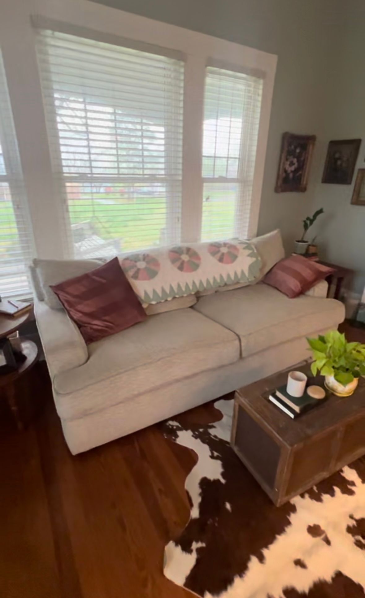 The rug was sourced on Facebook Marketplace and the plants were purchased from my SIL’s plant store called Wild Roots. The lamp with the scalloped shade came from TJ Maxx. I’m all about mixing high priced items and cheap thrift store items with a touch of Home Goods, Target and TJ Maxx. I’m also a sucker for meshing old and new. I truly believe that’s what gives you a curated, clean look without things feeling “too” old or “too” new—or even too matchy! It’s also always nice to shop your own home before going out and spending money. Yes, this is coming from someone who owns a retail store, but shopping your own home helps you save money and trains you to use the things you already have! I can’t tell you how many times I move things around in my own house. Everything will eventually find its perfect little home—and then I’ll come along and change it again! But that’s the fun of it all! It’s important to keep your home feeling fresh and exciting.