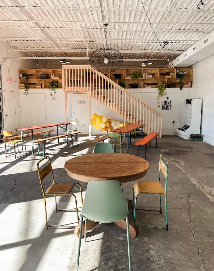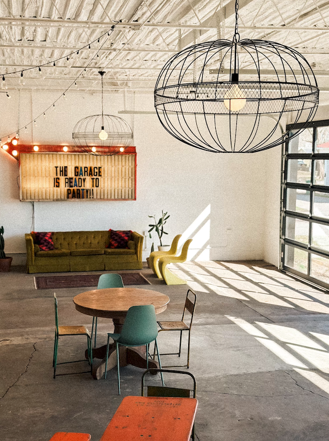 The Garage is a small event space located within Little Yellow Door in Huntingdon, Tennessee. We are located right behind the wonderful Mallards Restaurant and 1822 Coffee Co. Our unique event space was previously Pete’s Body Shop, owned and operated by Pete Smith. In the design of the space, we tried to hold onto the structure’s history as much as possible. Around the building, you will find nods to the auto industry mixed with modern and vintage decor. Our indoor rental space is 1200 square feet and can hold up to 100 people. We also have a small art loft where children are welcome to create, paint, read and play. In the coming months, we hope to have an outdoor patio to create a true indoor-outdoor feel when we open the large glass garage doors. Our vision for this space is for people to gather together to create, learn, and celebrate milestones both big and small. The Garage is the perfect place for birthday parties, showers, in-person meetings, paint parties, workshops and more.